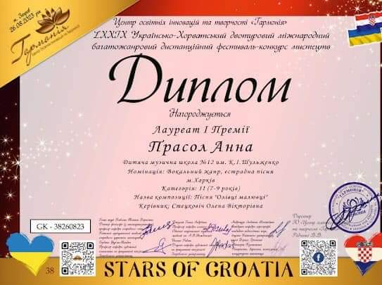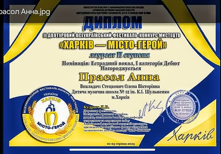 Вітаємо Прасол Анюту, ученицю 2-А класу, з першими перемогами на музичних конкурсах з вокального мистецтва!