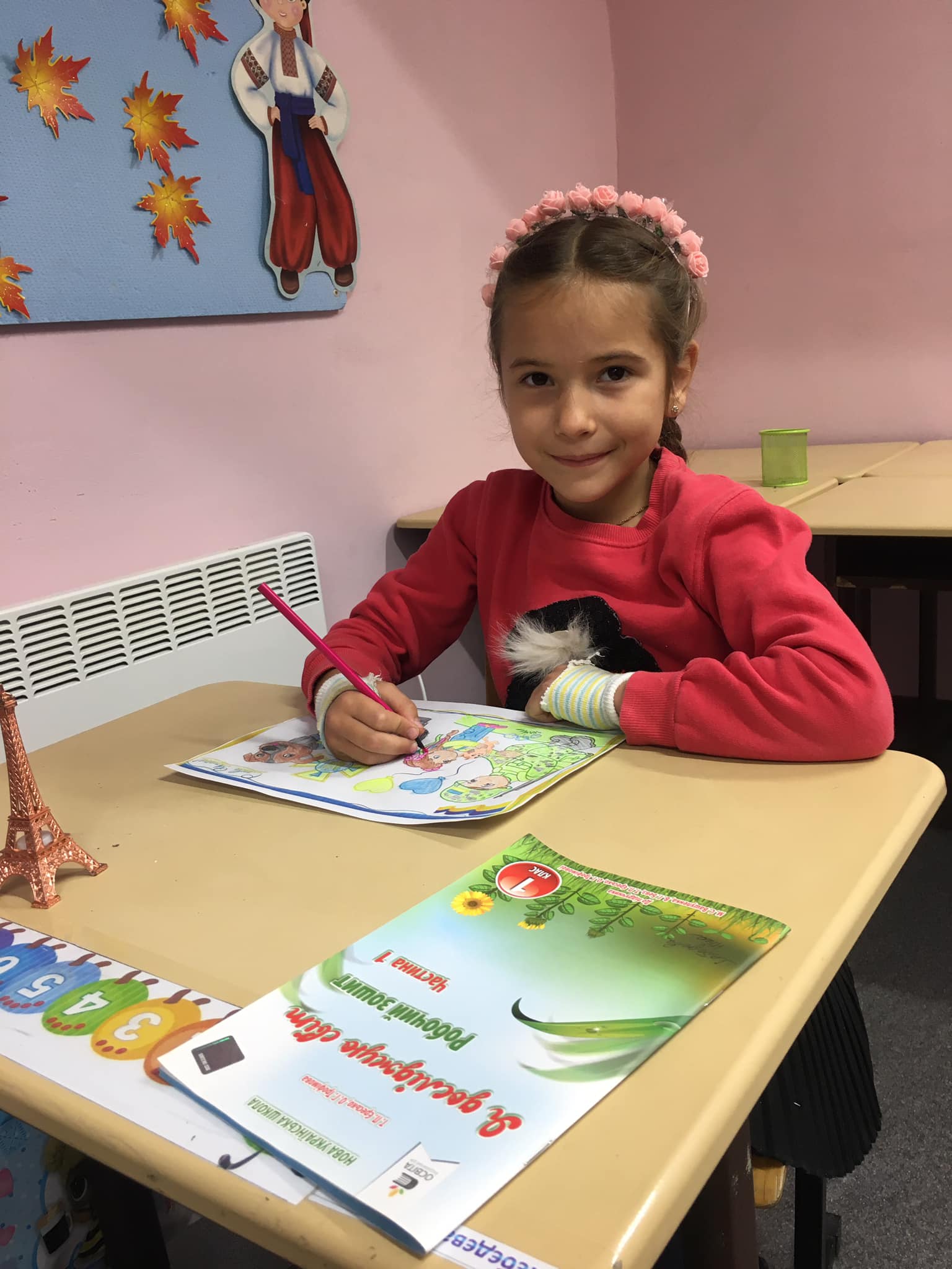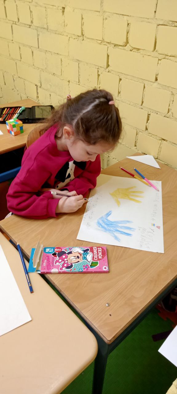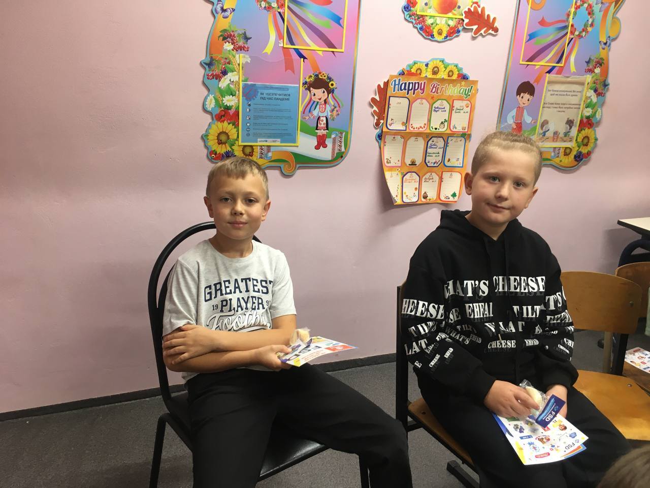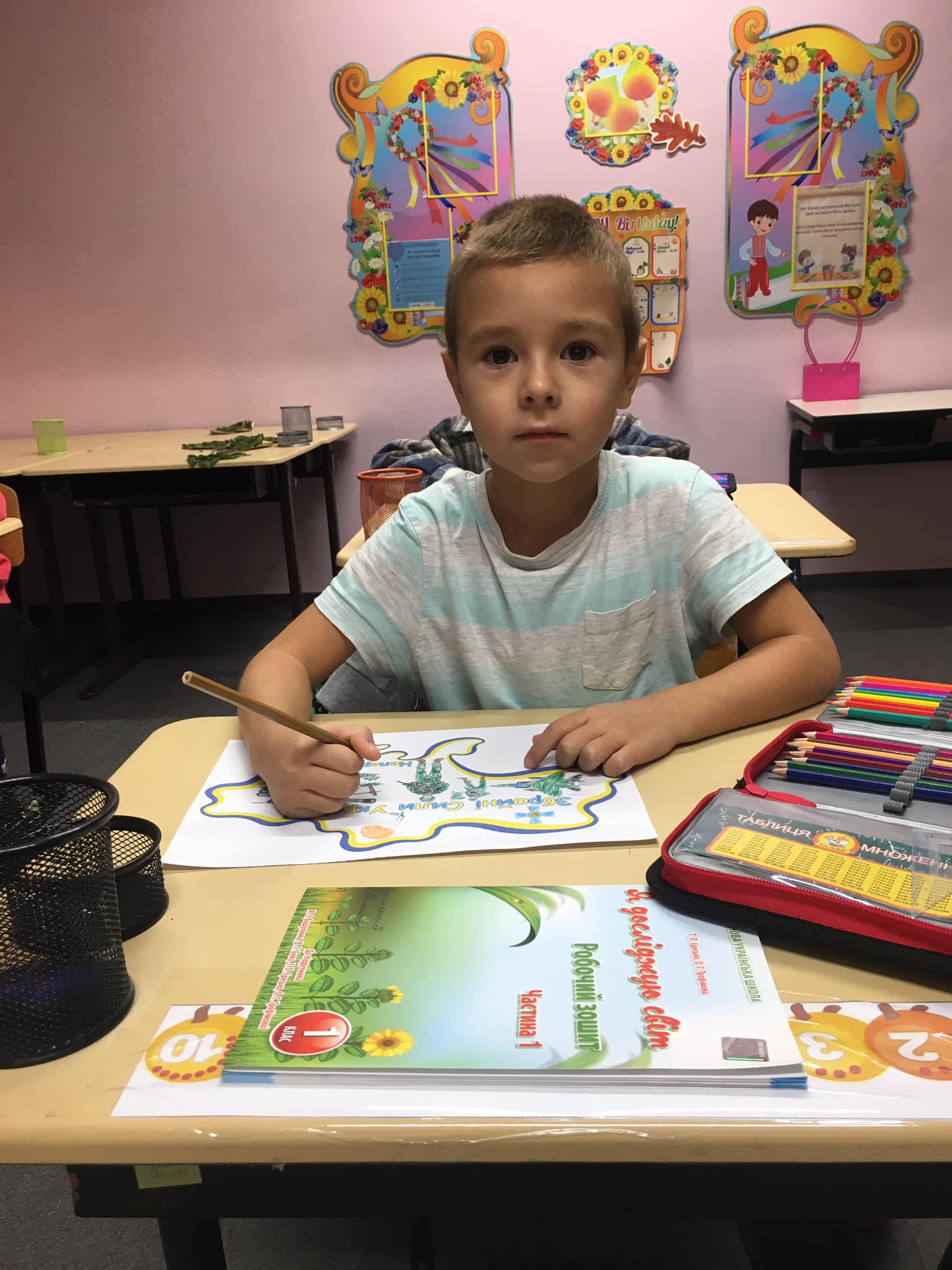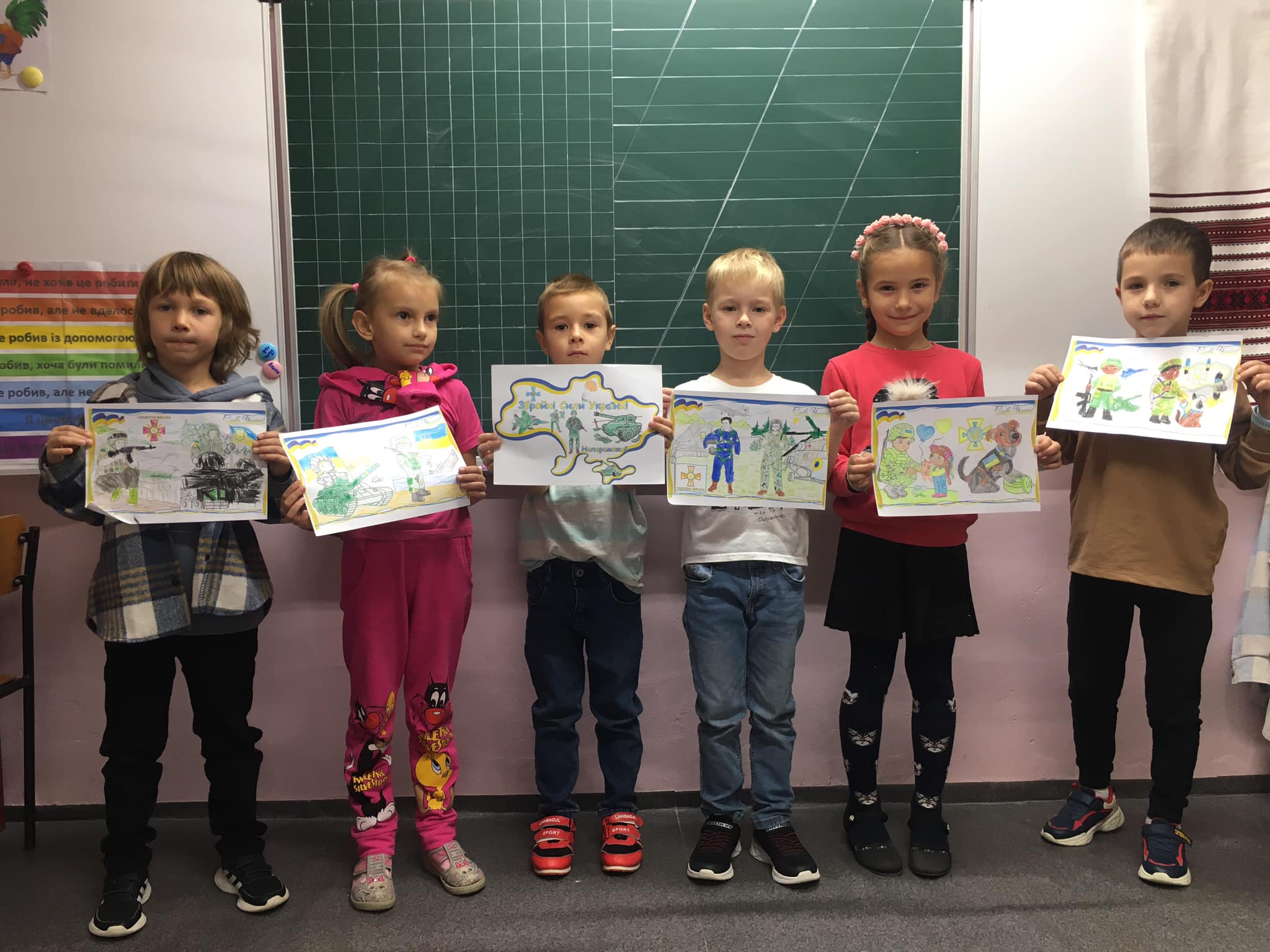 П'ятикласники намалювали чи принесли квіти , щоб привітати свою однокласницю, яка знаходиться так близько до війни, в одному з районів, де близько йдуть бойові дії, аби хоча б вона посміхнулася. І вона таки всміхається!!!