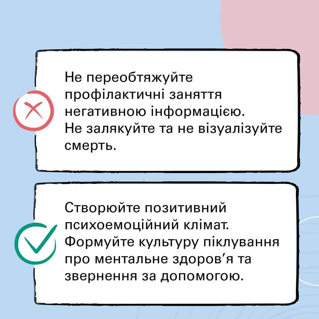 У нинішніх умовах ми повинні перемістити фокус уваги з академічних успіхів на підтримку і нормалізацію психічного стану учнів. Зараз це необхідно. Ми всі можемо і повинні долучитись до цього в рамках викладання свого предмету.